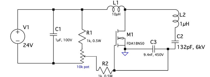 - Generation of toroidal electromagnetic field: By passing a high-frequency alternating current through a toroidal coil, it can be derived from Maxwell's equations that the electric field distribution around it is toroidal. We use a self-excited Class E oscillator circuit to generate an alternating current with a frequency of about 10MHz.
