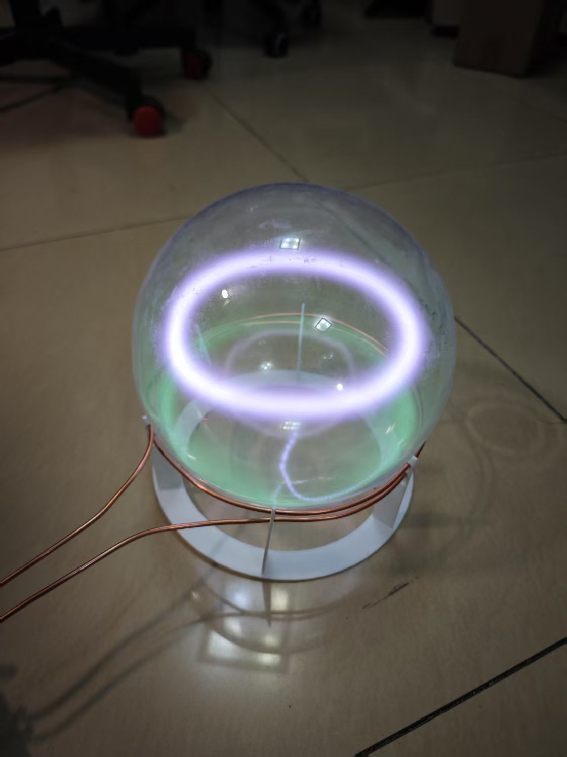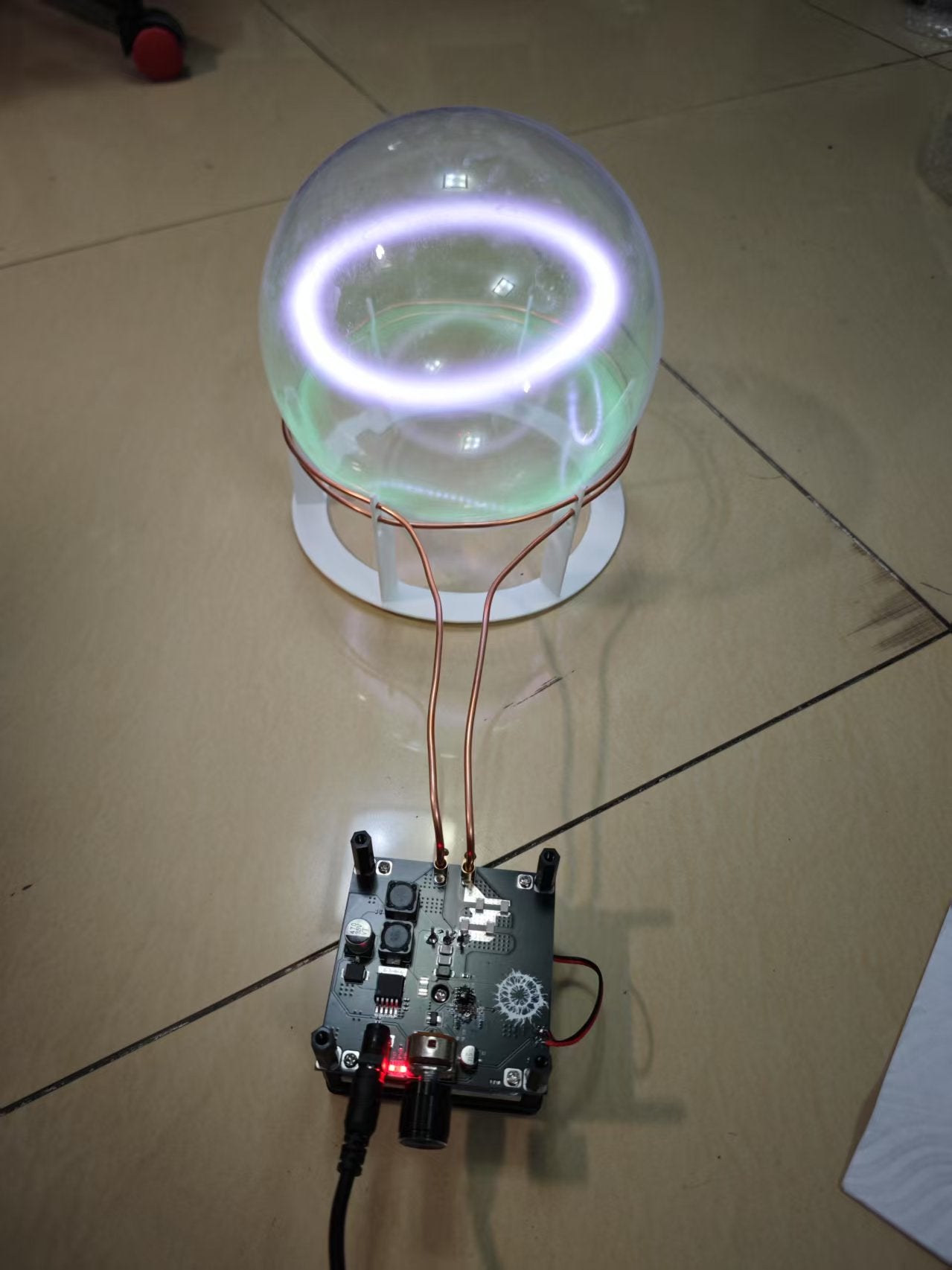 A huge plasma ring with a diameter of up to 20 cm. You can choose to purchase it with a circuit or buy a standalone glass sphere.